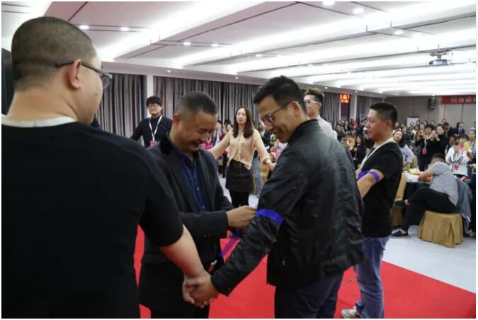 在晚會(huì)上,郭總及戴總親自為各個(gè)小組的隊(duì)長們綁上藍(lán)絲帶,藍(lán)絲帶意味著大家正式從商學(xué)院畢業(yè),是辛勤汗水與獲得成功的象征。