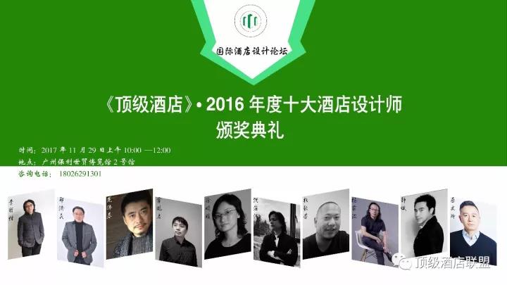 11月29日,《頂級酒店》“2016年度十大酒店設(shè)計(jì)師”頒獎典禮在廣州保利世貿(mào)博覽館2號館舉行。《頂級酒店》雜志是酒店設(shè)計(jì)師展示優(yōu)秀設(shè)計(jì)作品成果與互相學(xué)習(xí)的平臺,受到很多設(shè)計(jì)師及相關(guān)產(chǎn)業(yè)人士的關(guān)注和歡迎,此次論壇召開是為了嘉獎過去一年里表現(xiàn)出色的設(shè)計(jì)師。