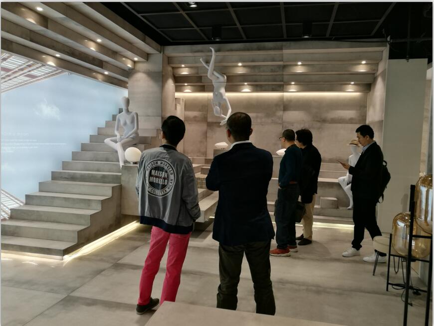 依諾瓷磚產(chǎn)品中心總監(jiān)朱江先生帶著大家參觀并詳細(xì)介紹依諾的產(chǎn)品以及展廳的設(shè)計(jì)理念,在參觀依諾展廳的眾多設(shè)計(jì)空間時,大家就瓷磚產(chǎn)品的設(shè)計(jì)運(yùn)用發(fā)表各自的看法,雙方進(jìn)行了熱烈的討論。