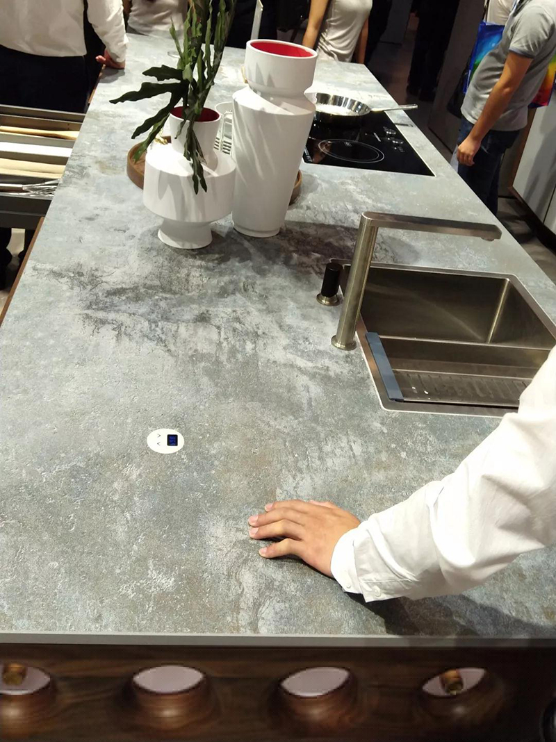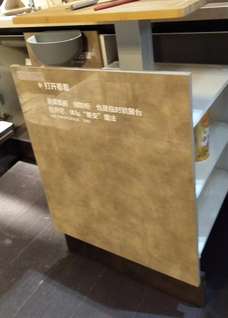 ▲某品牌在櫥柜門板、臺面、桌面的應(yīng)用展示
