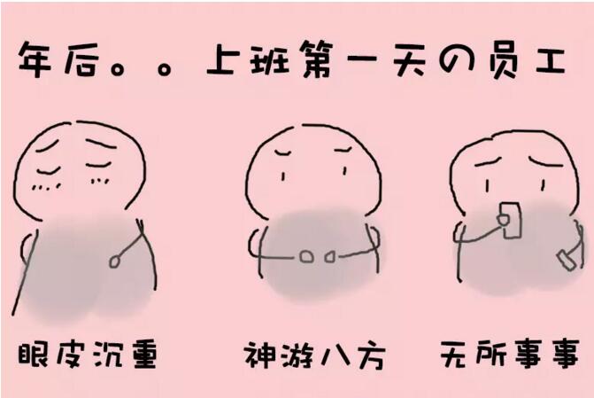 節(jié)后剛上班,很多人會(huì)感到煩躁、心緒不寧、注意力不集中。如果熱衷于和同事討論長(zhǎng)的見(jiàn)聞,很容易由于延續(xù)著長(zhǎng)放松情緒的“慣性”而不能進(jìn)入工作狀態(tài),無(wú)法盡快收心。