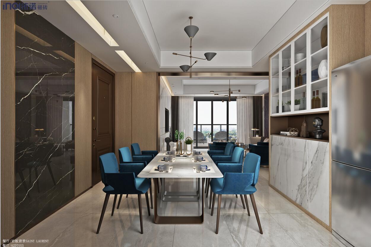 餐桌運用了依諾瓷磚【高級巖板定制】產品,高顏值,高品質,時尚不冷感,12MM厚度設計,厚實耐用,極致質感,格調不凡。