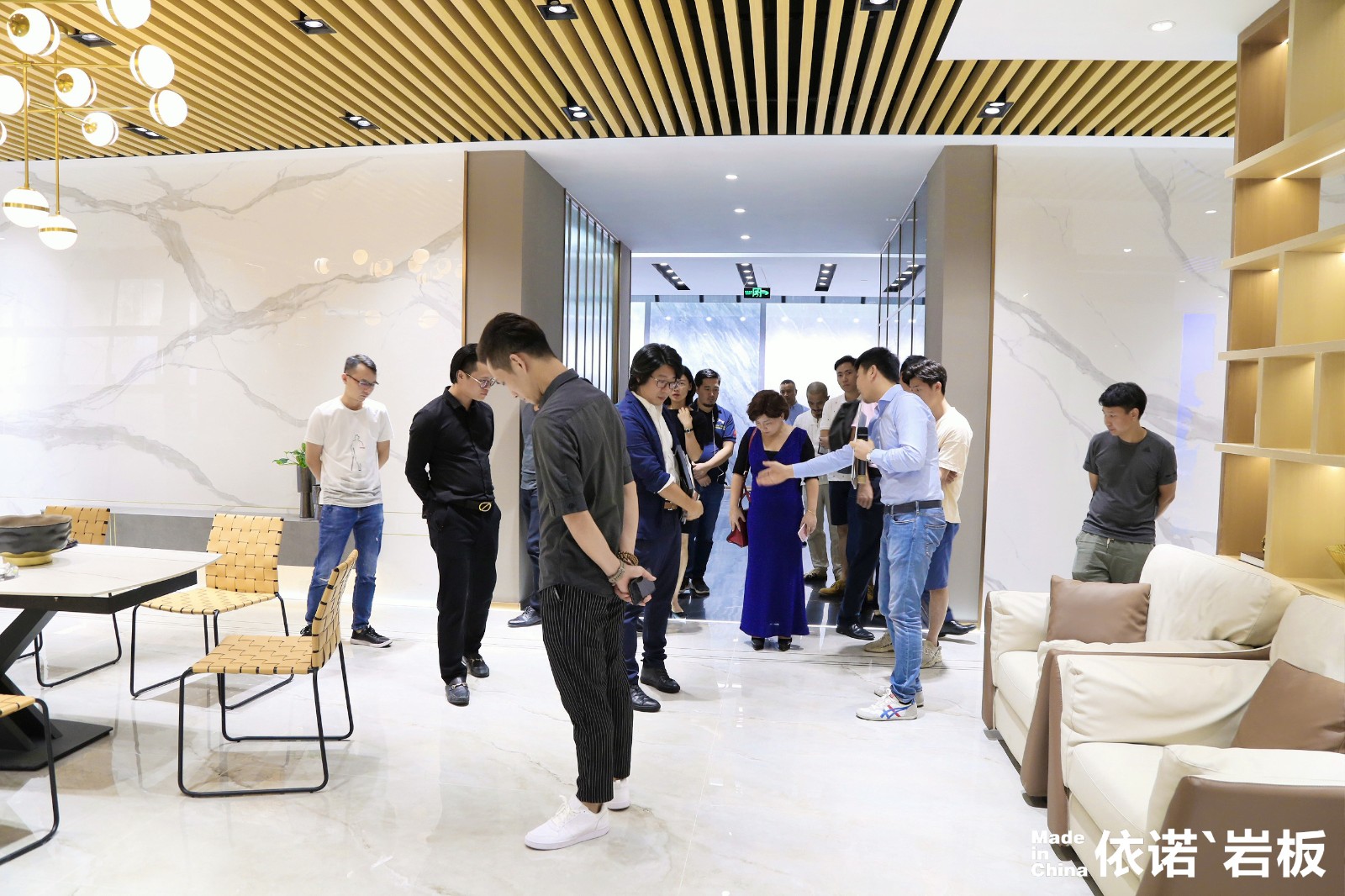 匾牌頒發(fā)后,嘉賓們在依諾瓷磚產(chǎn)品研發(fā)部總監(jiān)陳龍的帶領(lǐng)下,參觀了依諾企業(yè)總部展廳,優(yōu)質(zhì)的產(chǎn)品、高級的空間設計、精心的軟裝搭配,讓他們贊不絕口。