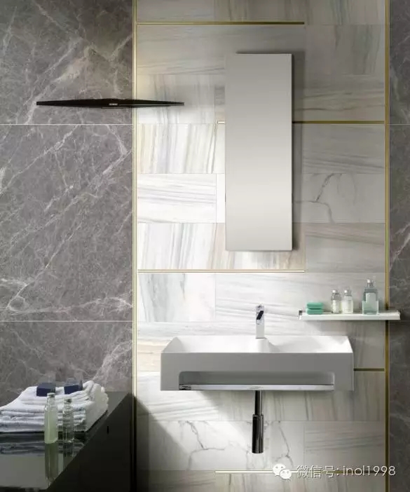 維多利亞紋理流暢柔和,這類方向性明確的紋理,通過不同方向的切割加工,在應(yīng)用時可作出橫豎交織的豐富變化,甚至和卡拉拉或直紋白搭配,都可以產(chǎn)生意想不到的效果,另外金屬線條的不規(guī)則使用,也是國外近幾年常用的大理石產(chǎn)品搭配方式。