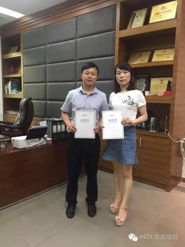 經(jīng)過多次溝通,且吳總親自來依諾佛山總部考察,吳總對依諾磁磚的認可也進一步加深,無論是產(chǎn)品系列,產(chǎn)品花色,營銷模式,還是如火如荼正在進行的天貓期間店線上線下模式都讓她為之震撼。帶著把依諾品牌在煙臺地區(qū)做強做大的決心,吳總與依諾磁磚正式簽訂加盟協(xié)議,在此,祝愿雙方合作愉快,互惠共贏,一起進步,走向美好的未來。