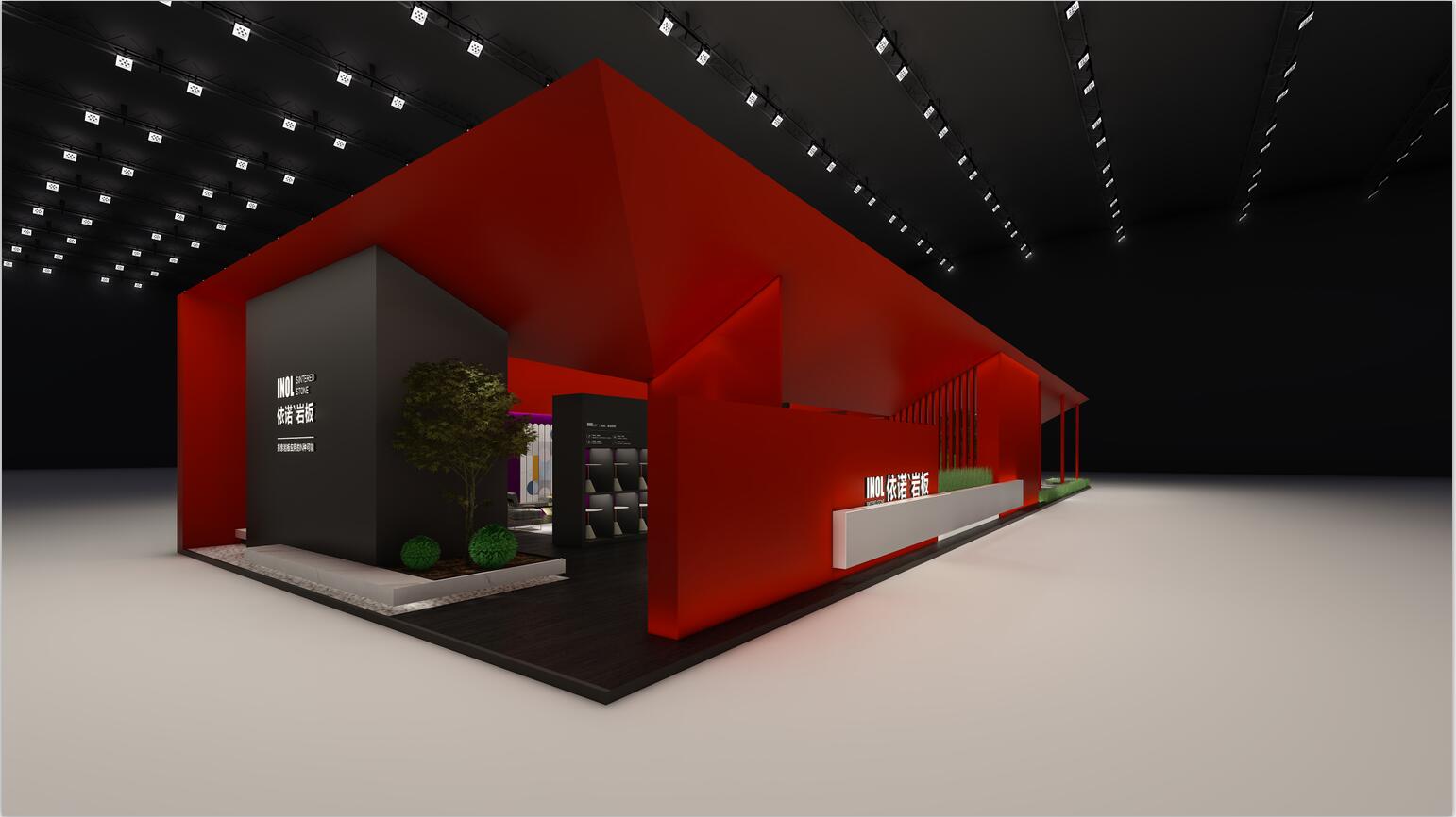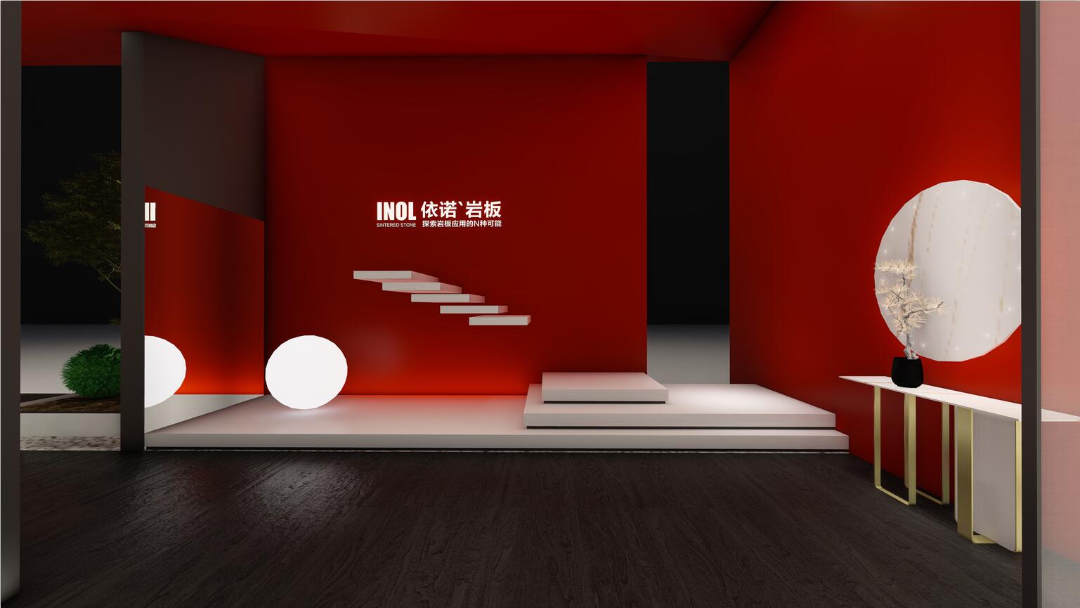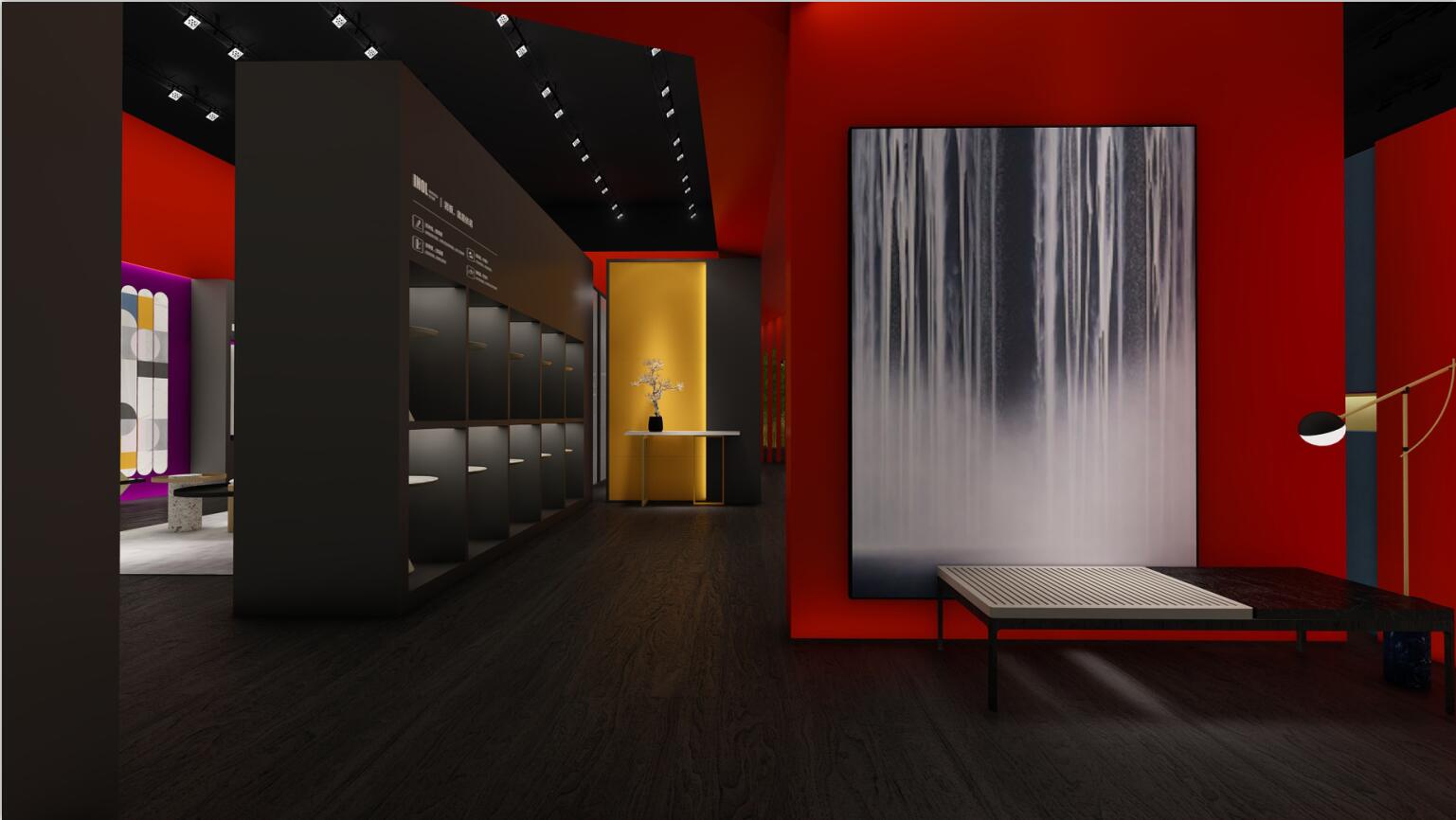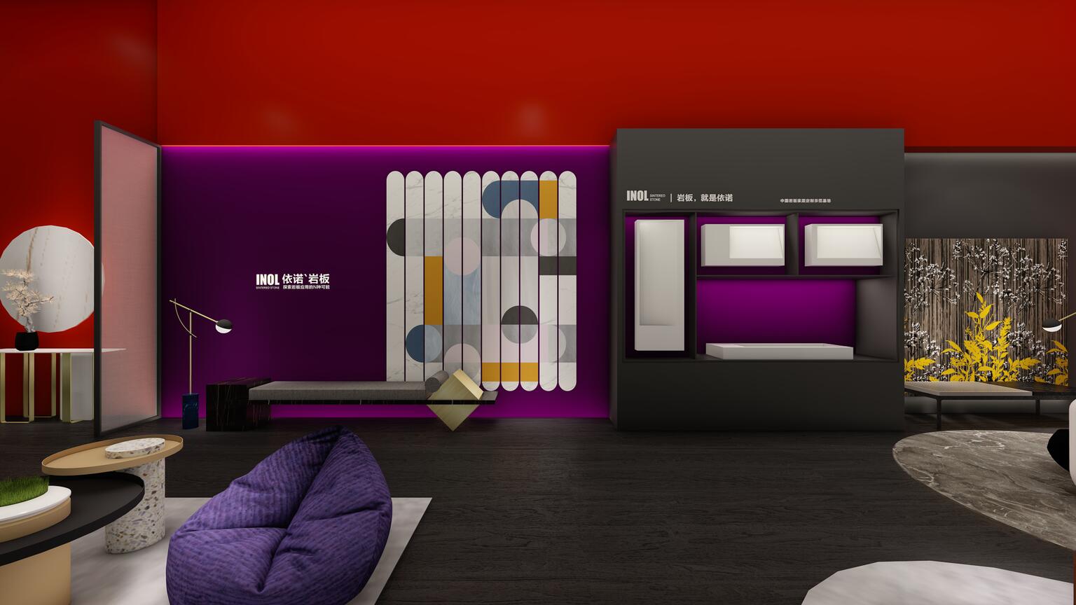 依諾瓷磚在本次廣州設(shè)計(jì)周上主推自主設(shè)計(jì)、研發(fā)與生產(chǎn)的高端巖板產(chǎn)品,因此設(shè)計(jì)師采用大膽的紅色作為主色調(diào),來(lái)體現(xiàn)依諾巖板廠家「新國(guó)貨力量」的主題。