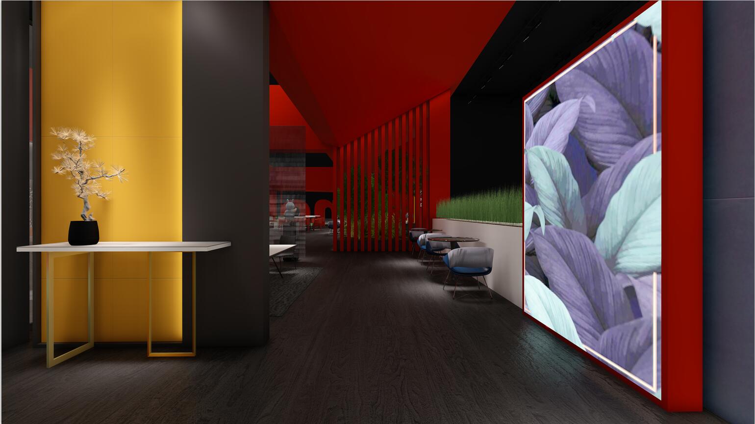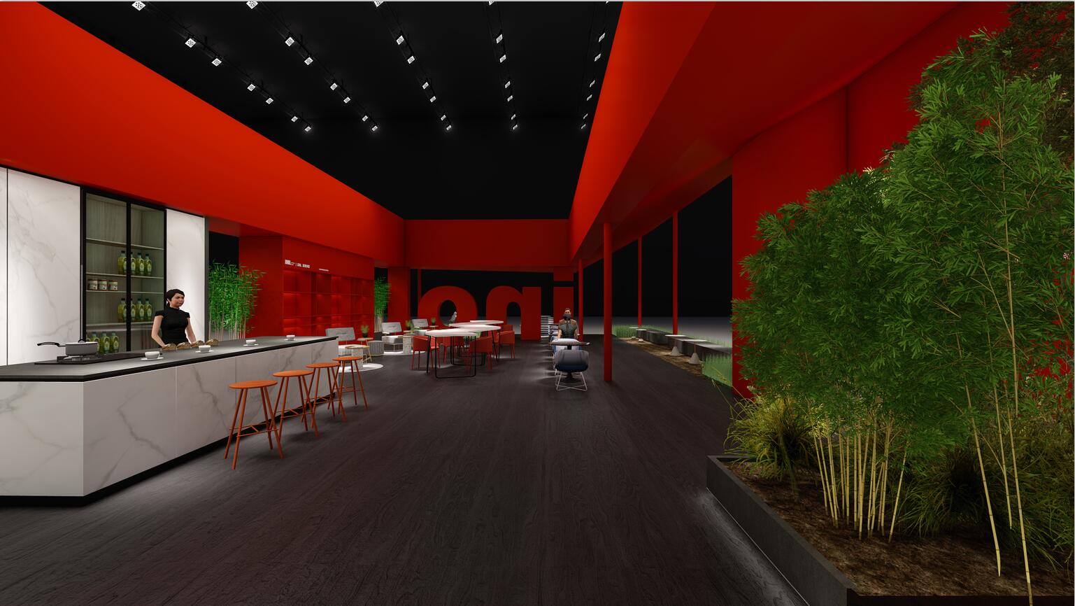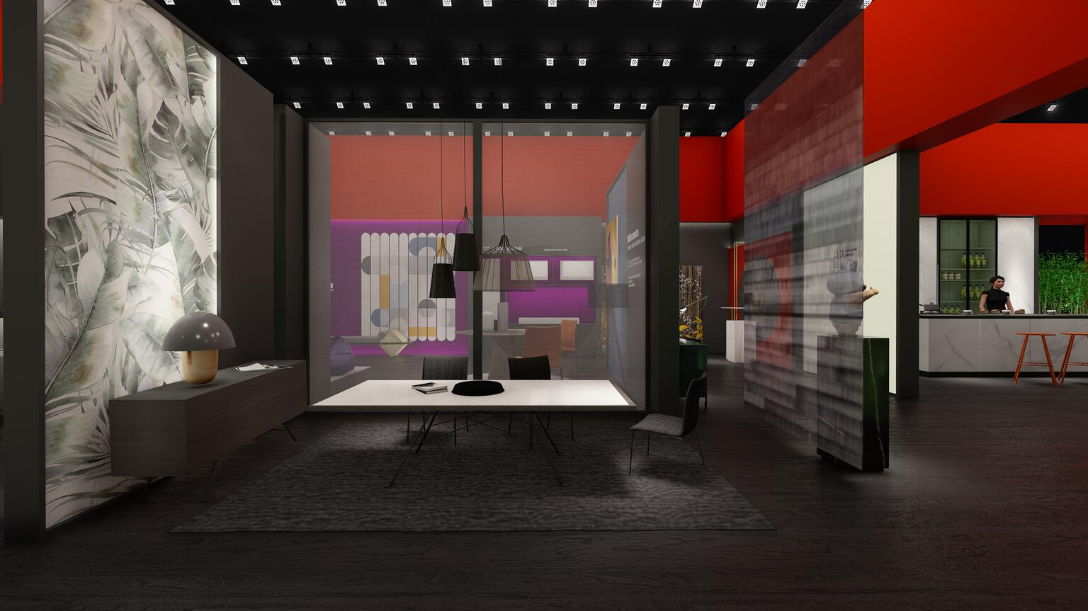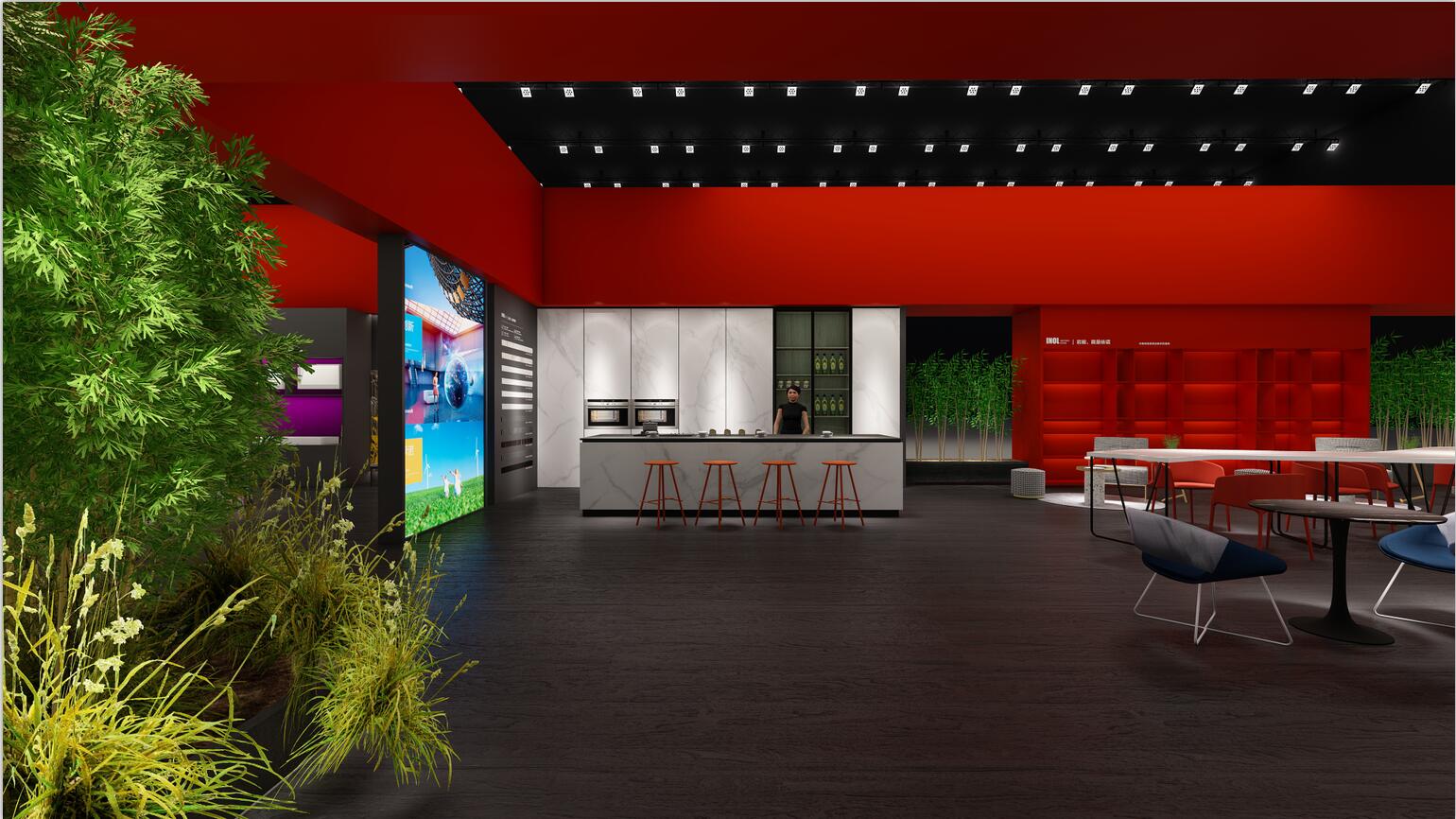 依諾瓷磚在本次廣州設(shè)計(jì)周上主推自主設(shè)計(jì)、研發(fā)與生產(chǎn)的高端巖板產(chǎn)品,因此設(shè)計(jì)師采用大膽的紅色作為主色調(diào),來(lái)體現(xiàn)依諾巖板廠家「新國(guó)貨力量」的主題。