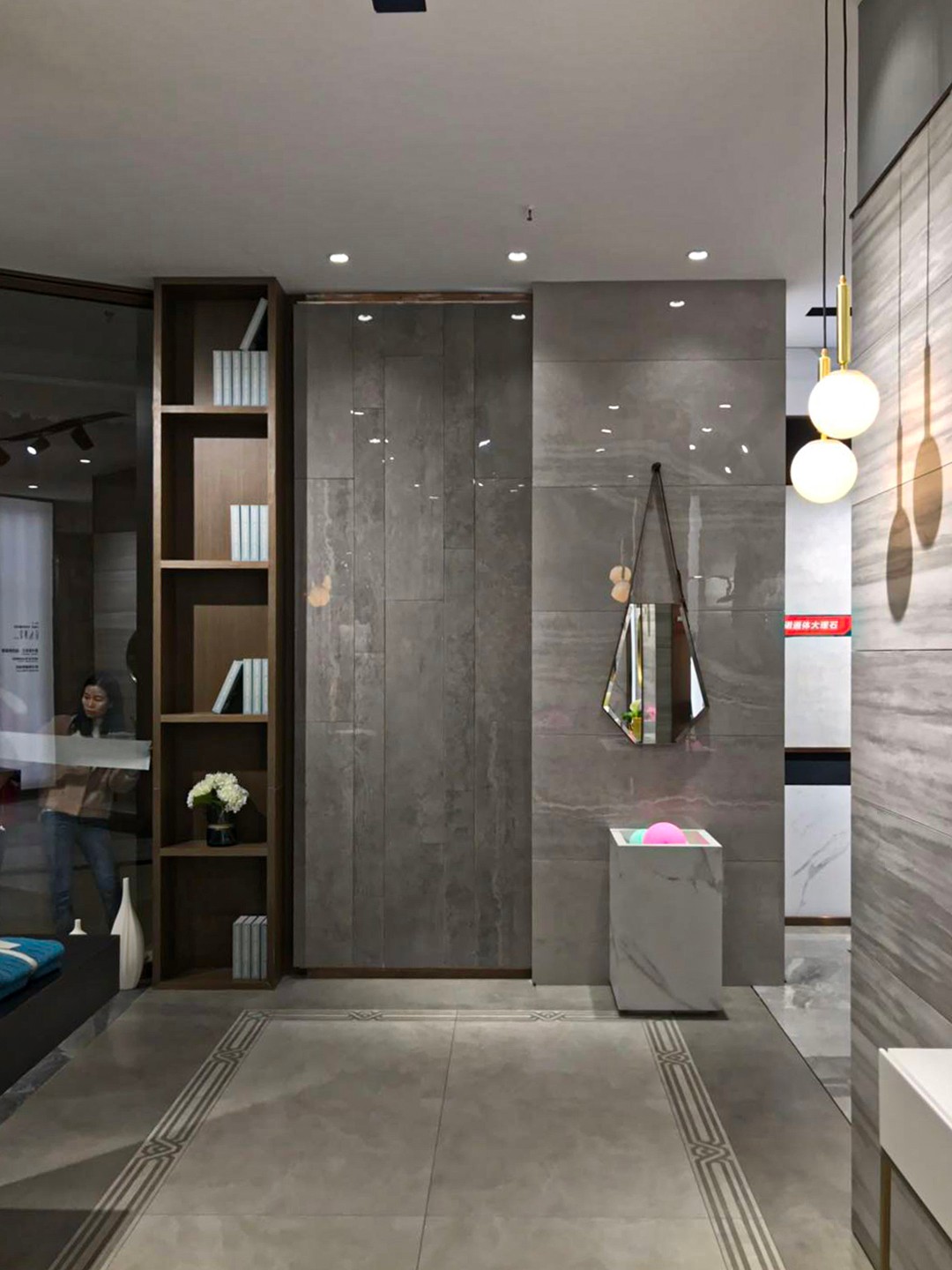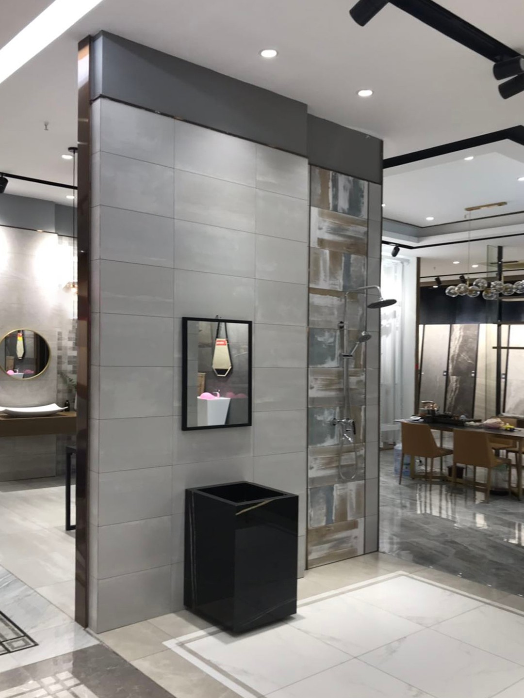 【依諾瓷磚·靖西店】在保證設(shè)計(jì)感的同時(shí),將空間的材質(zhì)、色彩盡量簡(jiǎn)化,以凸顯瓷磚產(chǎn)品的每一處細(xì)節(jié)美感,讓觀者回歸對(duì)產(chǎn)品的真實(shí)需求。