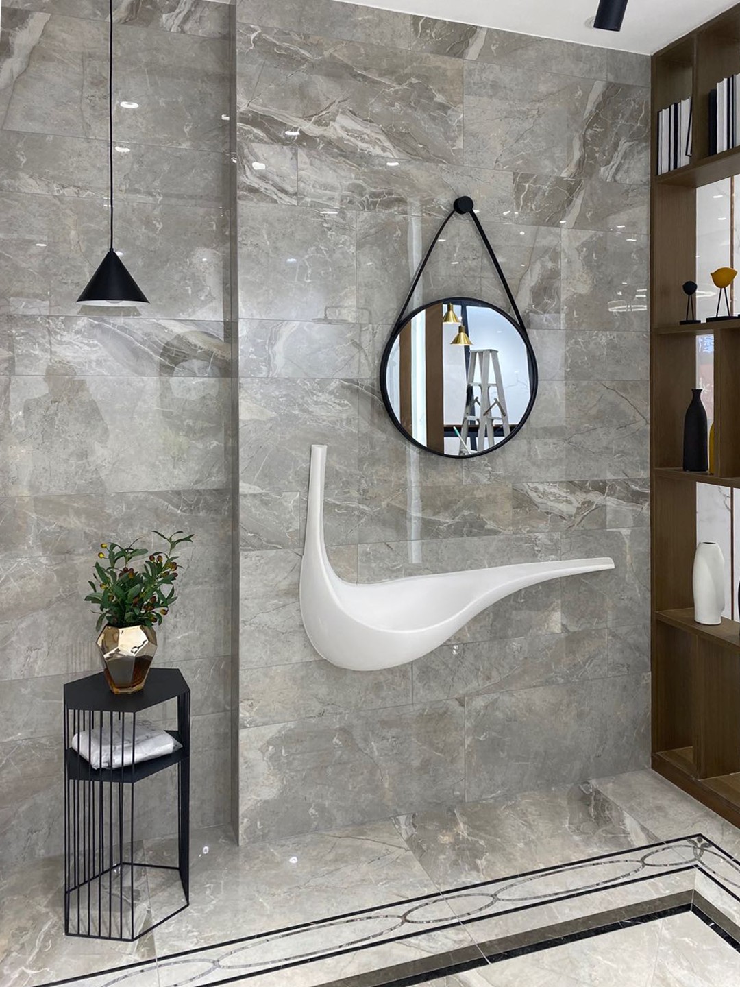位于山西介休的這家依諾瓷磚店,以簡約雅致灰打底,給進(jìn)店者一種輕松舒緩又不失高級感的初印象。