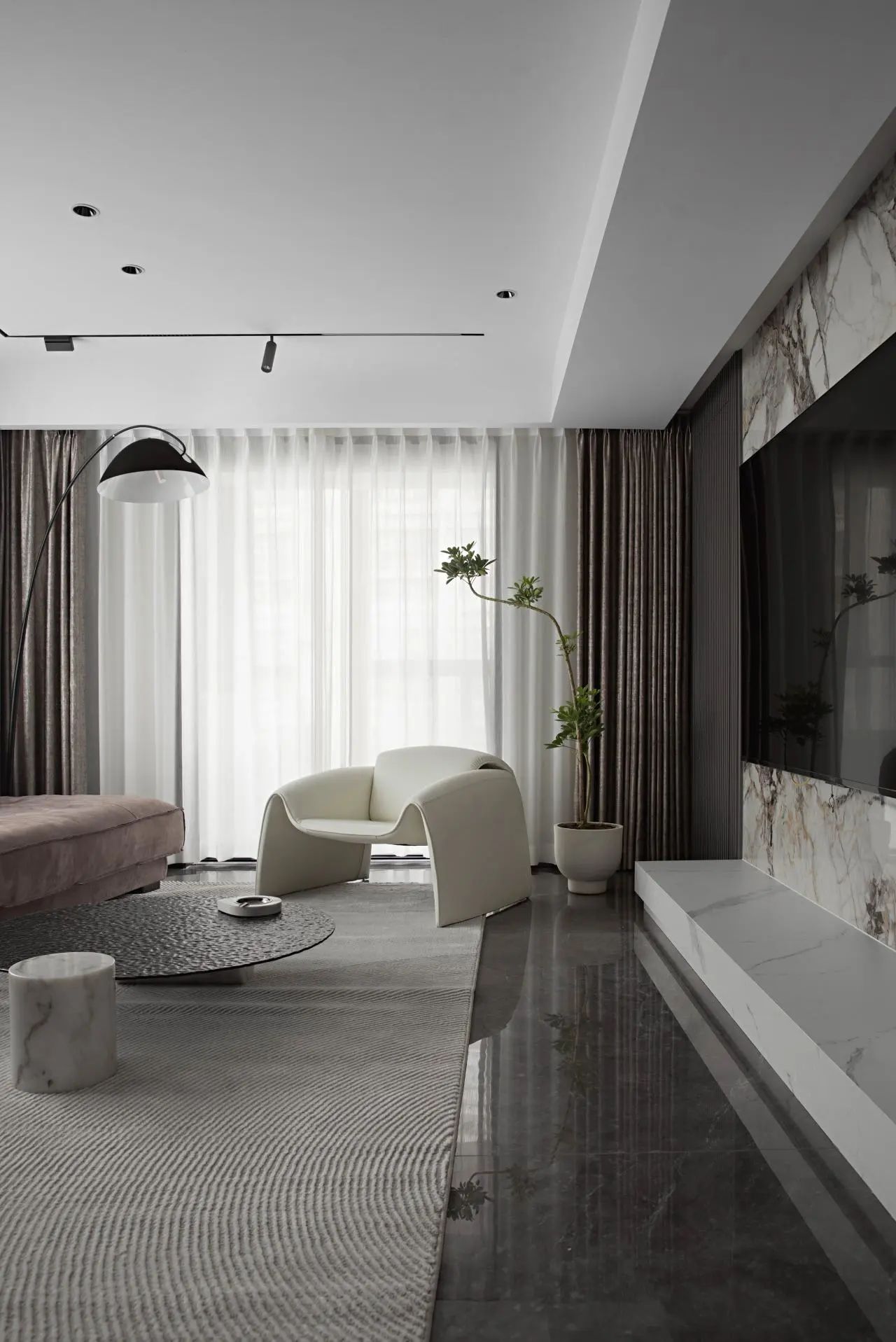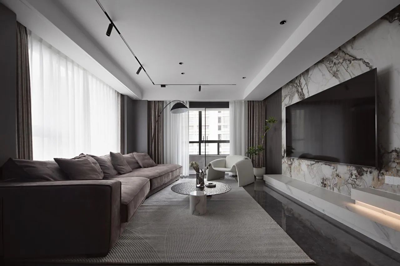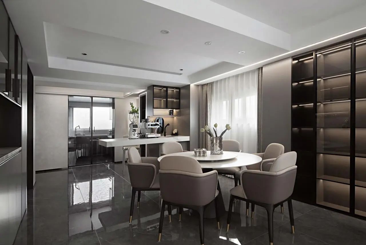 黑、白、灰為主色調(diào)空間,以依諾瓷磚【比斯特】貫穿其中,優(yōu)雅而內(nèi)斂。米白、咖啡色的出現(xiàn)打破客廳沉靜氛圍,承載起空間的溫暖情境。