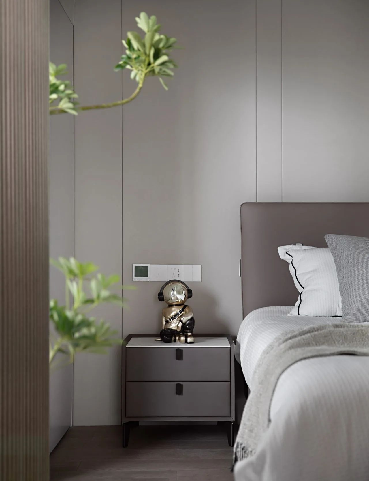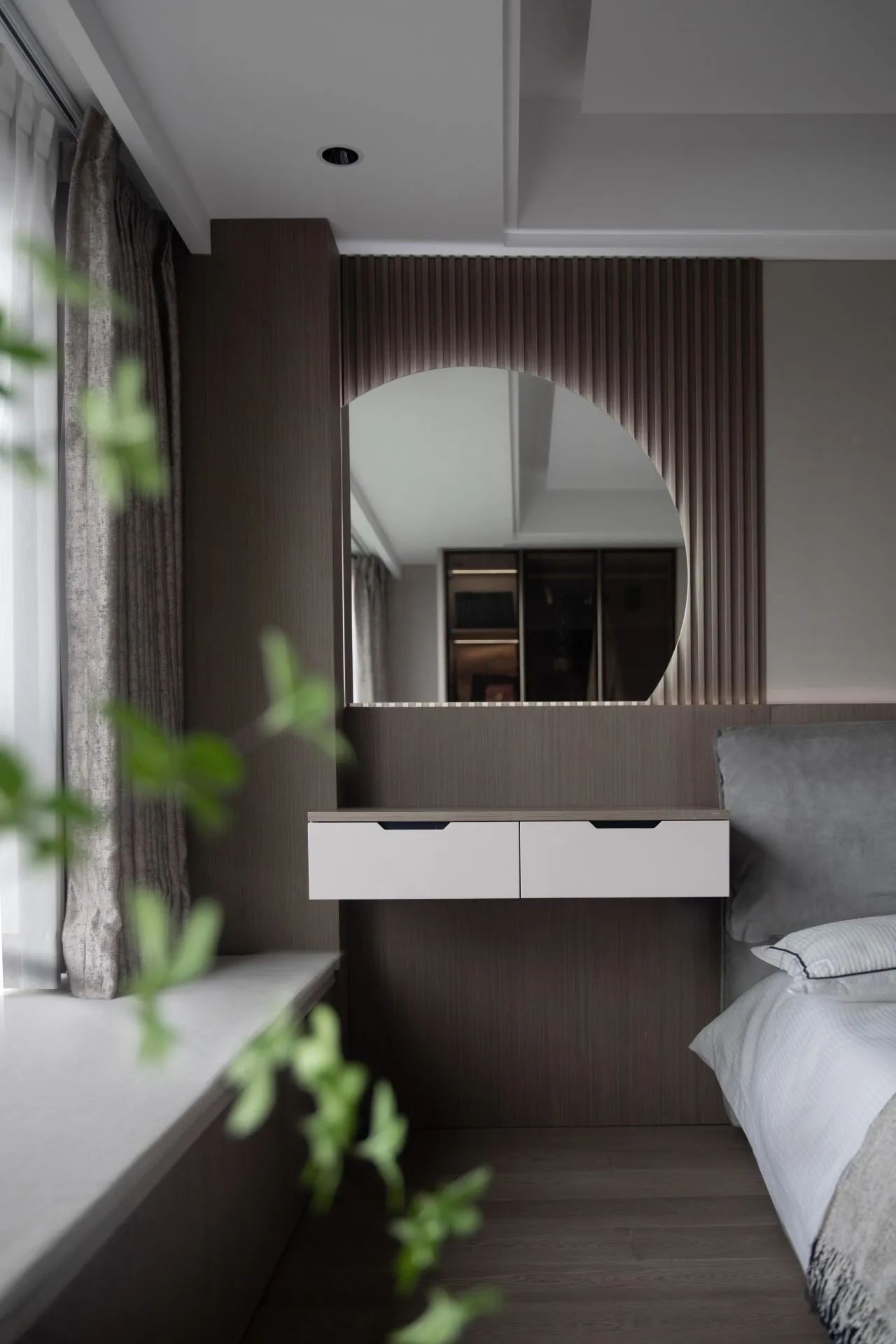 原木材質(zhì)在沉穩(wěn)大氣的風(fēng)格元素中增添了溫潤質(zhì)感氣息。幾分暖意,在柔和的臥室場景里生長。