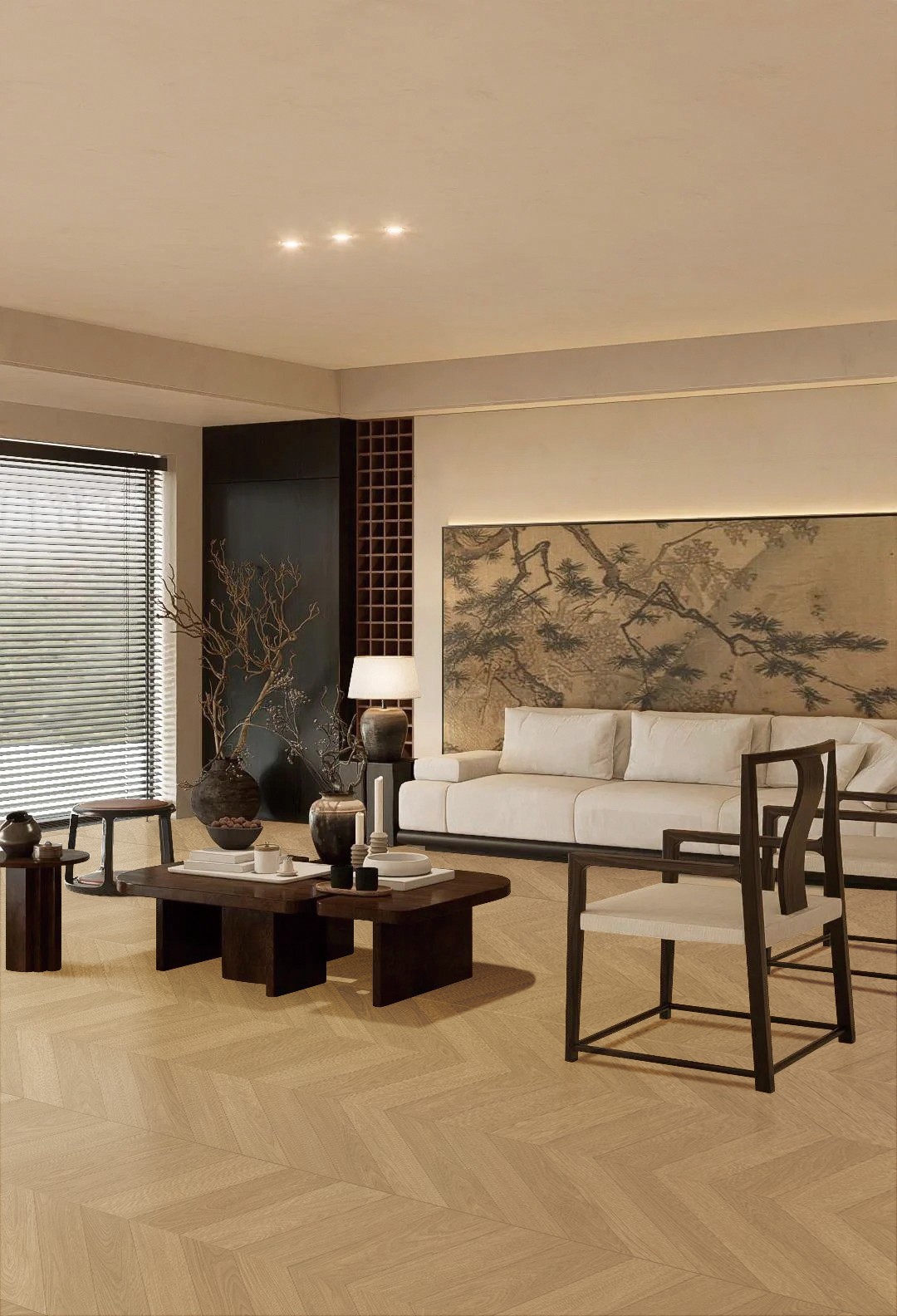 作為木紋磚的主流規(guī)格,依諾198×1200mm規(guī)格的木紋磚,滿足大多數(shù)戶型的需要,纖細(xì)條型,可根據(jù)實際需求實現(xiàn)工字、人字、魚骨等方式的鋪貼。 8~12個版面設(shè)計,還原原木生長軌跡,鋪出來的效果會更加接近木地板,渲染著恬靜的書香氣息,符合年輕人渴望化繁為簡、返璞歸真的生活理念。 依諾600×1200mm規(guī)格的木紋磚,是在磚面上直接幫你拼好圖案,用模具模擬出凹縫,對縫或錯縫鋪貼皆可,省工時、省美縫、施工便捷。 依諾600×1200mm木紋磚,色系豐富,還有復(fù)古花色、極簡幾何等不同版面設(shè)計,應(yīng)用于家居中,滿眼皆韻色,步步皆詩意。 木紋磚作為一種載體,將傳統(tǒng)美學(xué)的精粹傳遞進現(xiàn)代生活的日常。 以依諾木紋磚打造的現(xiàn)代家居,其溫潤質(zhì)感與中式美學(xué)融合碰撞,每一處細(xì)節(jié)都彰顯國人骨子里的極致浪漫與含蓄。