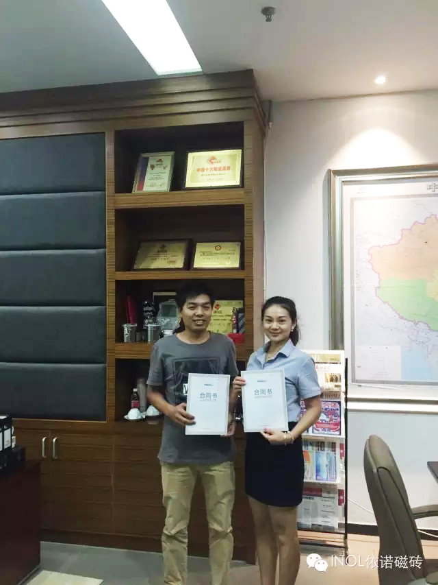 江西贛州依諾磁磚簽約代表(劉軍) 右-依諾西北大區(qū)經(jīng)理夏金鳳
