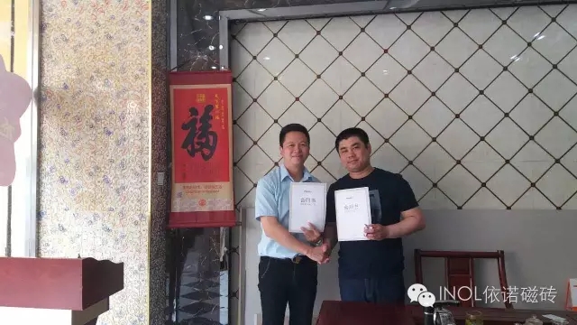 依諾磁磚東北區(qū)大區(qū)經(jīng)理林偉成; 右-遼寧朝陽依諾磁磚梁威威