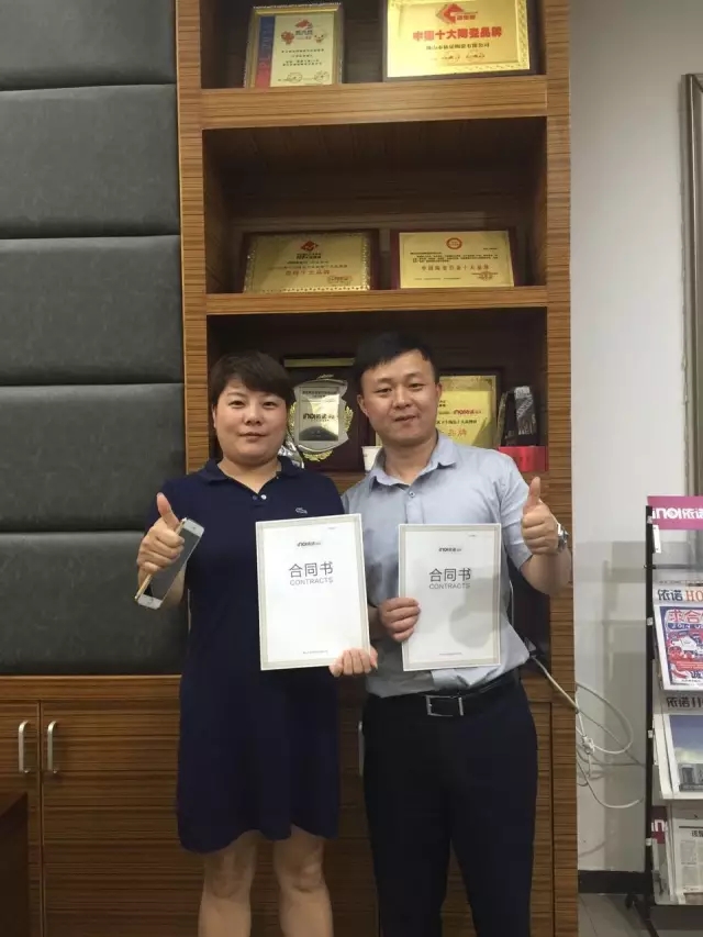 以前的選擇,決定你今天的生活,而今天的選擇,將會(huì)決定你以后的生活。浙江蒼南許冬密,做陶瓷建材僅有三年的時(shí)間,經(jīng)營(yíng)一個(gè)品牌,最終發(fā)現(xiàn)不合適,便及時(shí)調(diào)整策略。聽(tīng)聞其朋友常州依諾陳總介紹過(guò)依諾品牌,為之心動(dòng),于是多次主動(dòng)通過(guò)網(wǎng)絡(luò)和電話(huà)跟負(fù)責(zé)人溝通交流,最終來(lái)到依諾佛山總部考察參觀,當(dāng)場(chǎng)簽訂加盟協(xié)議。