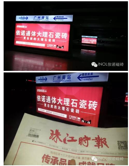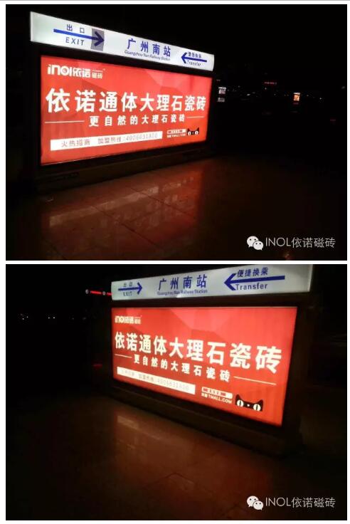 瓷磚品牌年,為了更好地落實(shí)品牌宣傳效果,近日,依諾瓷磚以“更自然的大理石瓷磚”為主題的新廣告畫面成功登陸廣州高鐵南站站臺(tái)廣告位。