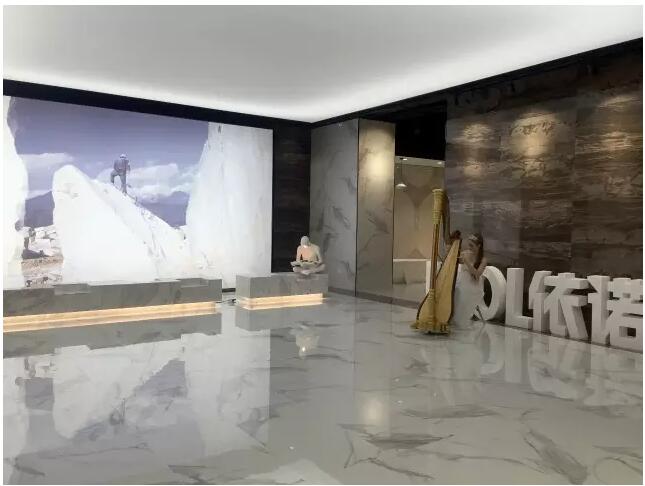 同時,依諾現(xiàn)在主打大規(guī)格產(chǎn)品,開放式的展廳設(shè)計讓空間更具通透感,大規(guī)格產(chǎn)品在其中展示時視覺效果更加流暢。