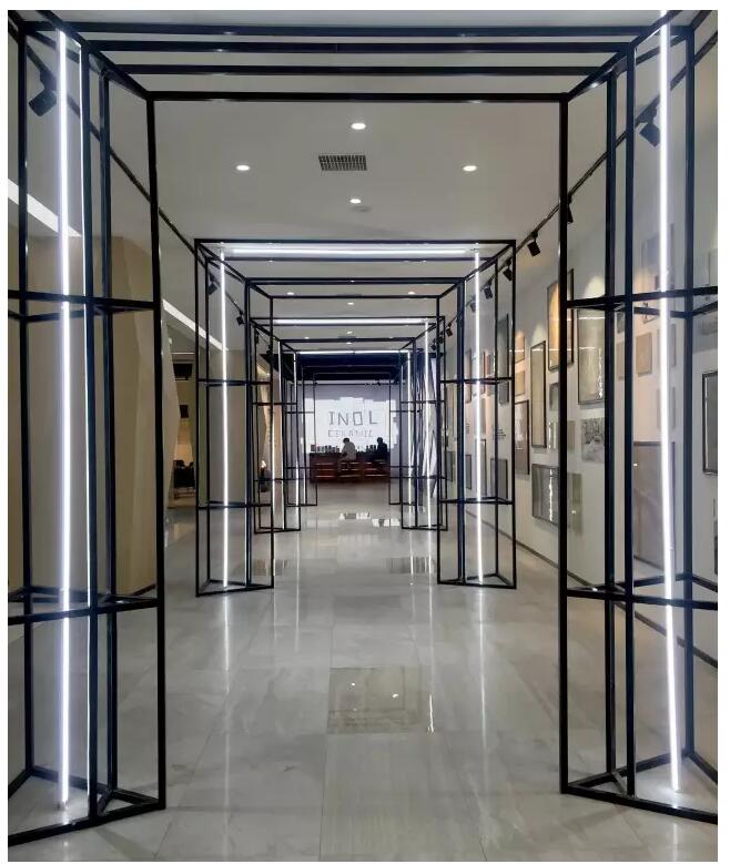這次依諾通體大理石館在細(xì)節(jié)上也做足了功課,大到一面燈箱,小到一截樓梯,大到一張洽談桌,小到一盞裝飾燈,都有可圈可點的地方。