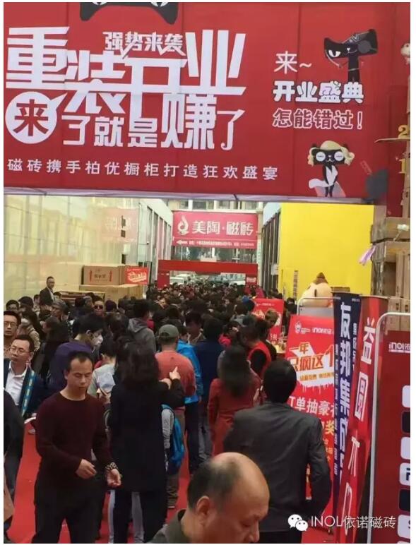 2016年10月17日,依諾瓷磚北京閩龍旗艦店重裝開業(yè),這是一場充滿歡呼和雀躍的讓利盛宴。當日購磚人流將所在的閩龍?zhí)沾墒袌鰯D得水泄不通,再次印證依諾瓷磚領先的瓷磚品牌實力和瓷磚品牌魅力。