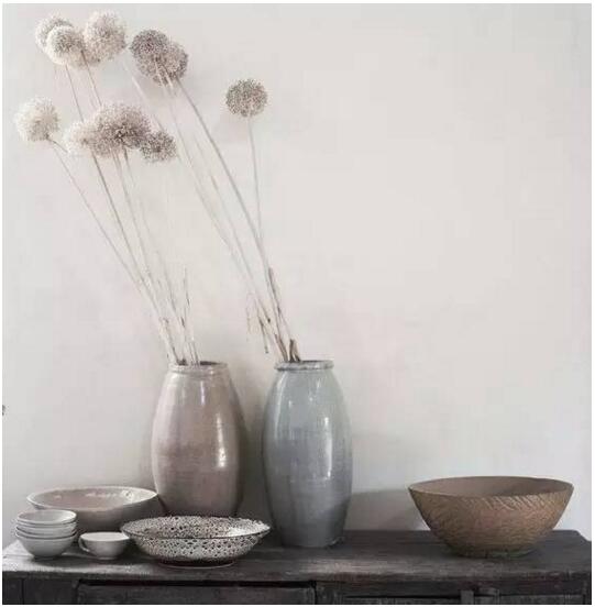最推薦的是造型簡單的大玻璃瓶和白瓷瓶,單獨用或者混搭用都容易上手,也不挑植物的色彩和形態(tài)。▼