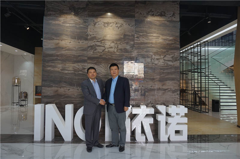 2016年12月12日,依諾瓷磚戰(zhàn)略合作伙伴尚高衛(wèi)浴董事長曹宇勇一行前來依諾佛山總部參觀交流和選材。依諾企業(yè)總經(jīng)理郭萬龍先生熱情接待曹總一行參觀依諾總部展廳,并詳細介紹依諾產(chǎn)品和未來發(fā)展趨勢;雙方就瓷磚與衛(wèi)浴在產(chǎn)品、設計、展示方面的融合進行了深入探討。曹總對依諾瓷磚產(chǎn)品設計,展廳布局和細節(jié)贊嘆不已,不時駐足拍照,并表示依諾瓷磚是年輕時尚而有品位的品牌,和尚高衛(wèi)浴的定位高度吻合,此行大有驚喜。