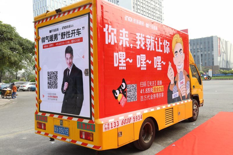 ▲網(wǎng)絡(luò)媒體車在華夏陶瓷城內(nèi)進行同步直播宣傳