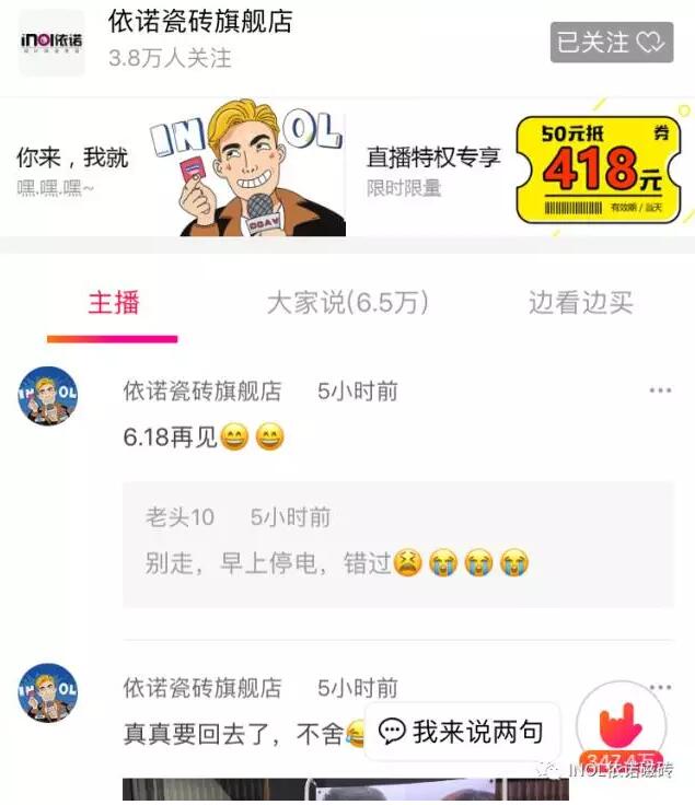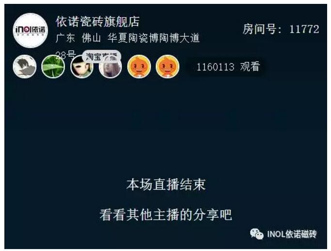 做了一場依諾瓷磚天貓直播,比較牛的那種,