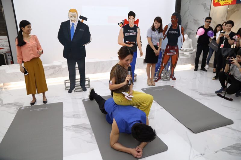 ▲樊野現(xiàn)場教大家平板支撐,珍珠姐“毫不客氣”地坐了上去