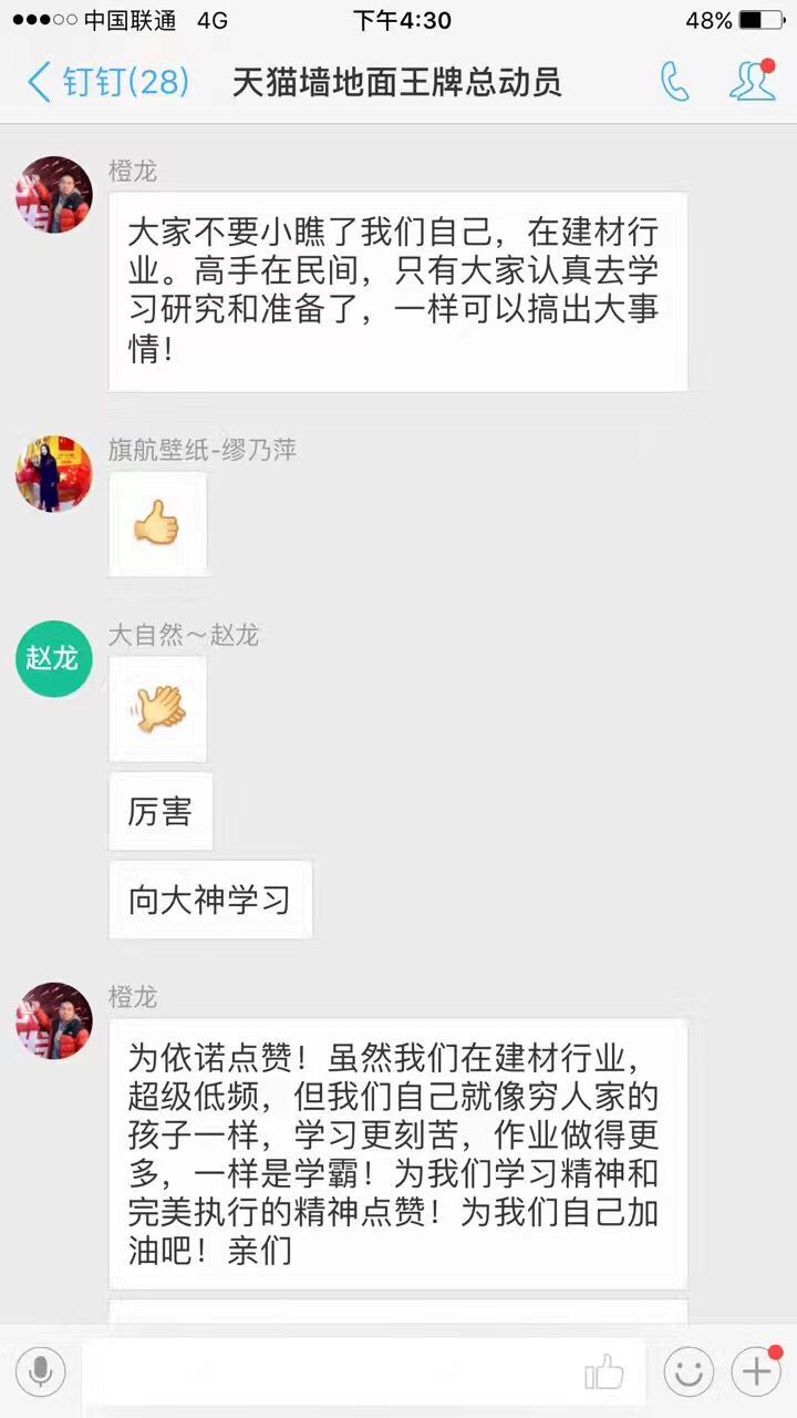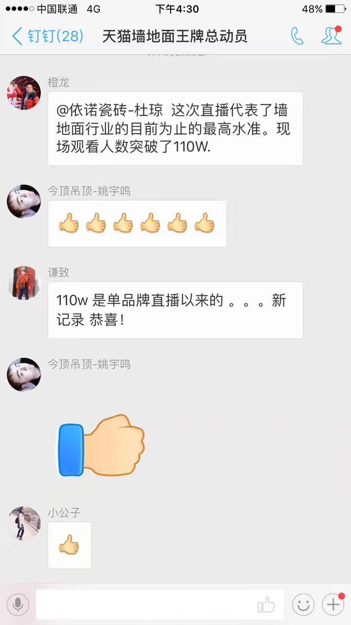 天貓家裝類目負責(zé)人橙龍,在“天貓墻地面王牌商家”釘釘群里是這樣評價依諾的這場直播:這次直播代表了墻地面行業(yè)到目前為止的最高水準,現(xiàn)場(在線)觀看人數(shù)突破了110萬!大家不要小瞧了我們自己,在建材行業(yè),高手在民間,只有大家認真去學(xué)習(xí)研究和準備了,一樣可以搞出大事情!