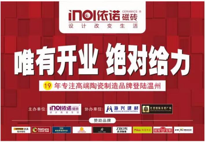 為慶祝依諾瓷磚品牌登陸溫州,現(xiàn)正推出開業(yè)九大福利,各種福利強(qiáng)勢(shì)來(lái)襲,搶到就是賺到!機(jī)不可失!時(shí)不再來(lái)!