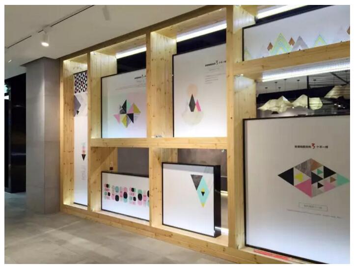 若看累了瓷磚實景間,停下來欣賞一下我們平面設(shè)計師所設(shè)計的物料吧,糖果色的幾何圖案混合加入磚的元素做成一幅幅畫作,放置在暖色的木框架之上。展示,可以很純粹很簡單,更好的生活體驗一直是我們依諾產(chǎn)品研發(fā)的出發(fā)點。