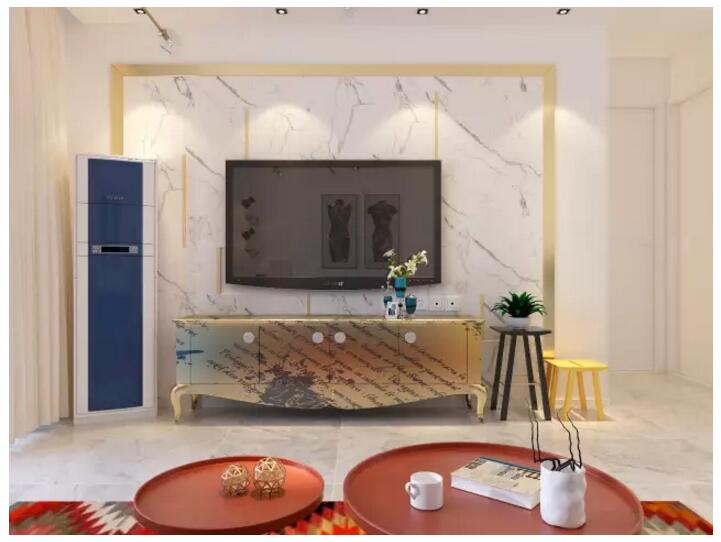 電視背景墻:采用依諾通體大理石瓷磚,卡拉拉白系列