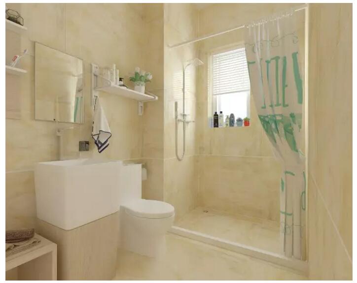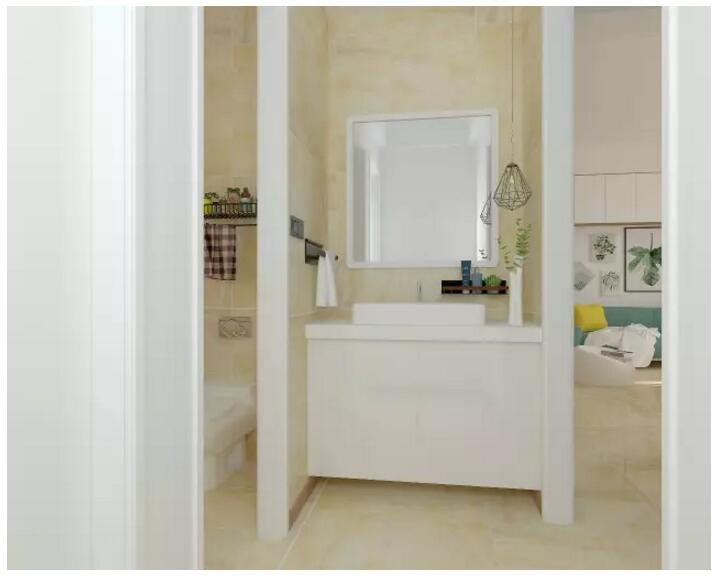 高導(dǎo)水性能和增強(qiáng)防滑作用,墻面則采用400X800mm長形的方案來鋪貼,再配上櫥柜,五金件和軟裝
