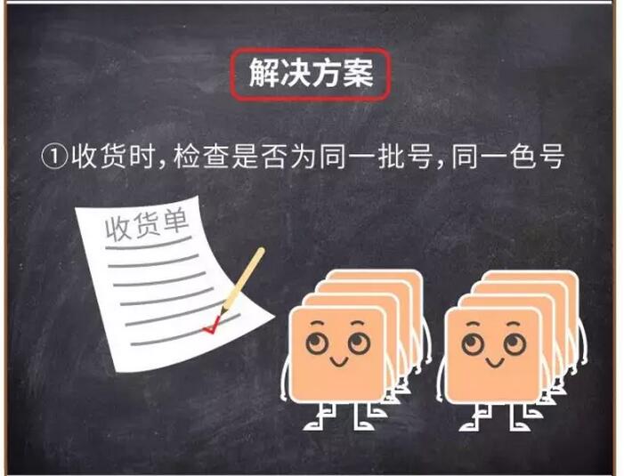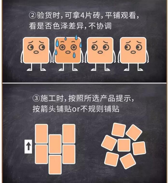 ② 驗貨時,可拿4片磚,平鋪觀看,看是否色澤差異,不協(xié)調(diào);