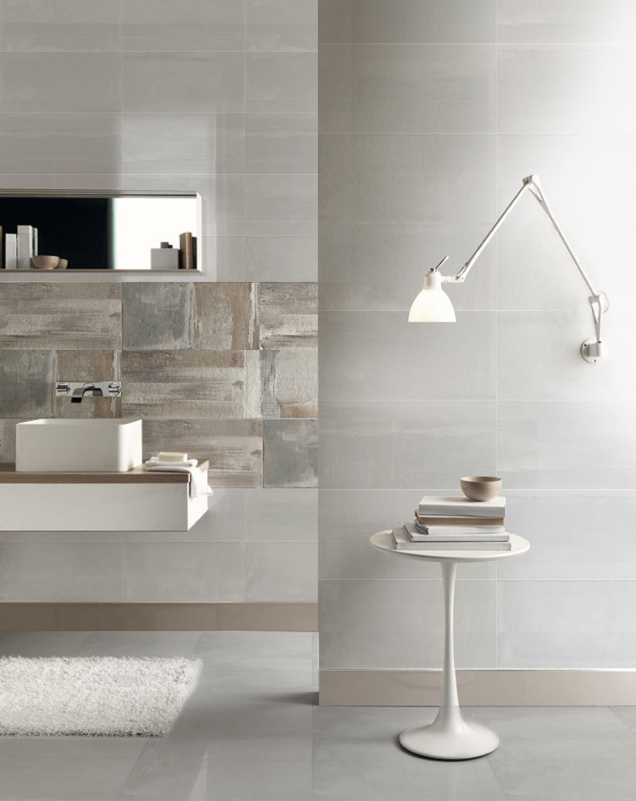 這個原理,就像依諾的這款釉面磚產(chǎn)品,水泥肌理的主磚,單獨(dú)使用,簡約得沒有一點(diǎn)兒贅余,完全就是那種高級的禁欲系即視感。