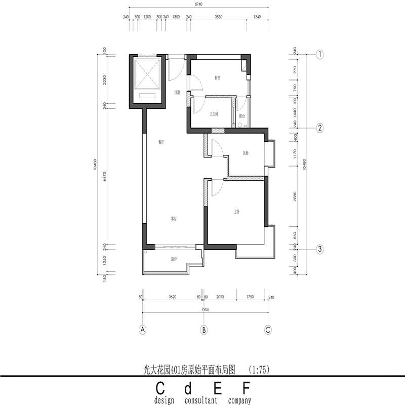 此次的改造對象是廣州光大花園一套70方左右的商品房。可以看到,房子還是比較老舊的,目前是兩房一廳,格局分布也不是太合理。