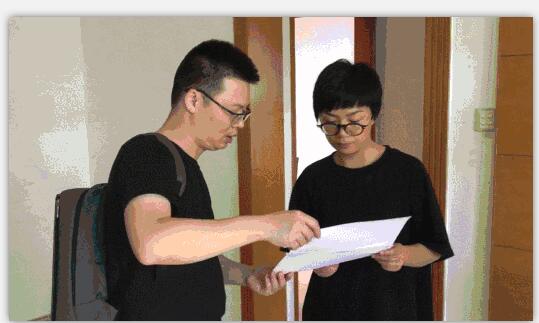 看過房子之后,太平洋家居網(wǎng)理想居項(xiàng)目監(jiān)制&高級項(xiàng)目經(jīng)理梁棟深(左)向依諾瓷磚市場企劃&網(wǎng)絡(luò)營銷部總監(jiān)杜瓊(右)講解本次改造項(xiàng)目的設(shè)計(jì)方案。