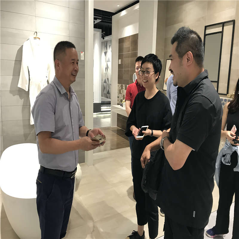 為了能更好地了解依諾的產(chǎn)品,給業(yè)主帶來更好的設(shè)計(jì),陳子俊老師決定親自到依諾總部展廳進(jìn)行參觀。8月2日,太平洋家居網(wǎng)理想居欄目組、丙丁戊己設(shè)計(jì)顧問有限公司等一行人來到依諾瓷磚總部展廳,在依諾瓷磚總經(jīng)理戴富林及市場企劃&網(wǎng)絡(luò)營銷部總監(jiān)杜瓊的帶領(lǐng)和介紹下,一起參觀了依諾展廳。