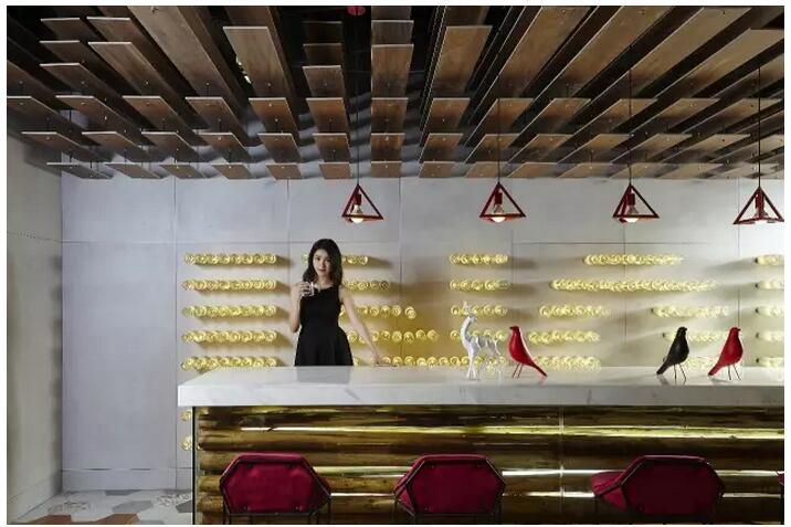 在派對中暢飲,有人說喝酒喝的是心情,也有人說喝的是場景,不去想木紋磚為什么吊在天上、樹木為什么要在吧臺(tái)里珍藏,我只想對此情此景一一品嘗。