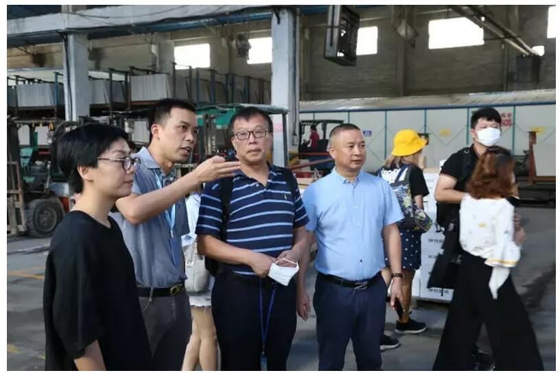 ▲依諾企業(yè)制造中心總經(jīng)理李錦國(guó)(右一)向華夏陶瓷網(wǎng)總編劉小明(中)介紹依諾制造中心