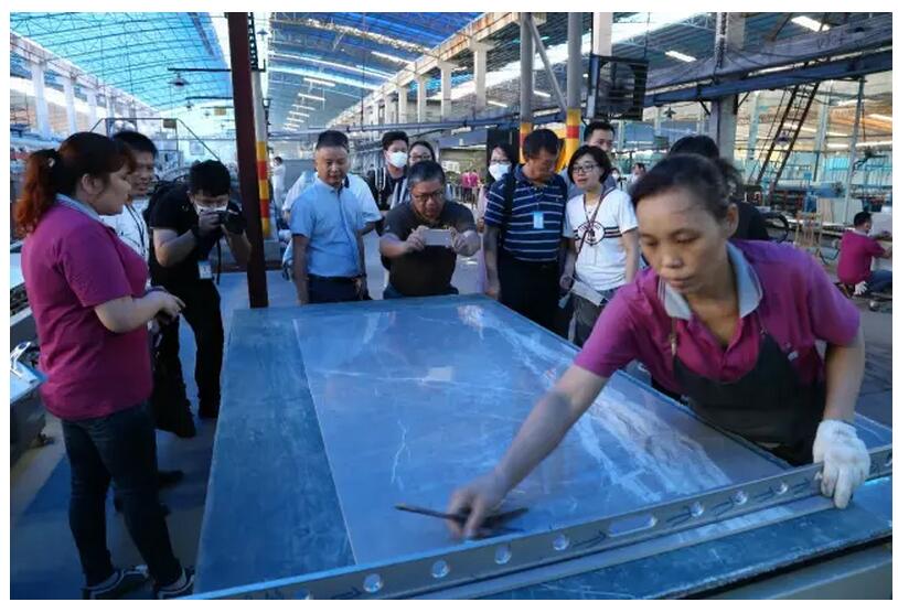 活動(dòng)當(dāng)天,媒體朋友們先參觀了依諾佛山總部展廳,時(shí)尚、現(xiàn)代化的產(chǎn)品和空間應(yīng)用備受好評(píng)。隨后,媒體朋友們來(lái)到了位于肇慶占地26萬(wàn)㎡的依諾制造中心,親眼見證依諾大板的整個(gè)生產(chǎn)過(guò)程。有媒體表示,當(dāng)下有很多品牌為“大規(guī)格”瓷磚發(fā)聲,但是能夠量產(chǎn)并開放大板生產(chǎn)車間的品牌卻是少之又少。今天依諾邀請(qǐng)媒體參觀大板生產(chǎn)線,足見依諾企業(yè)的底氣和自信。