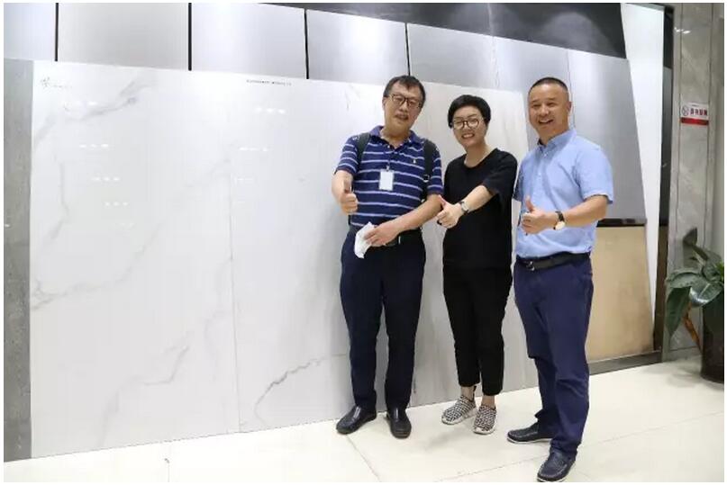 ▲為依諾大板點(diǎn)贊(左起為依諾瓷磚品牌總經(jīng)理戴富林、依諾瓷磚市場(chǎng)企劃&網(wǎng)絡(luò)營(yíng)銷部總監(jiān)杜瓊、華南理工大學(xué)教授尹虹博士)