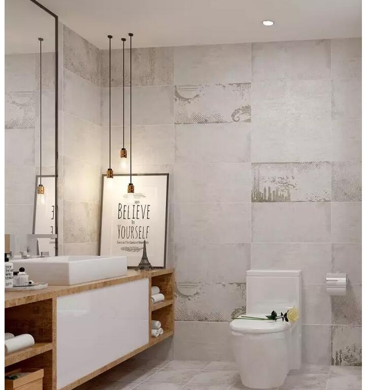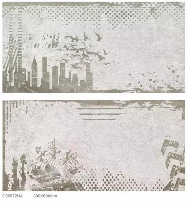 這款產(chǎn)品就像一面被涂鴉的老墻,既有歲月的韻味,又因?yàn)橥盔f的暗花而增添了青春的氣息,花片跳鋪的模式最適合這款產(chǎn)品,也是近幾年國際比較流行的花片用法,沒有規(guī)律,鋪貼效果更自然隨意。