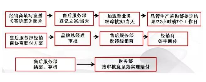 ⑥售后服務(wù)部根據(jù)鑒定情況,與經(jīng)銷商溝通協(xié)商達(dá)成處理初步意見,呈報公司領(lǐng)導(dǎo)審批;