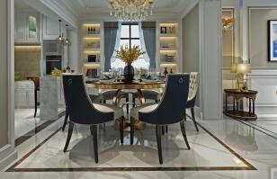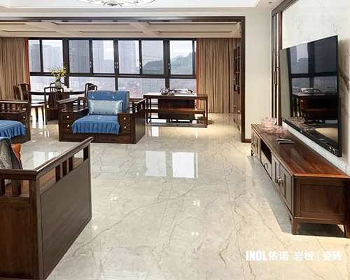 新中式裝修瓷磚怎么選?依諾瓷磚品牌老友記,200㎡的新中式家裝案例,地面選用依諾通體大理石瓷磚【歲月鎏金】系列,產(chǎn)品的連紋設(shè)計(jì),鋪貼后帶來大氣寬敞的視覺感受,凸顯紋理的自然美感。