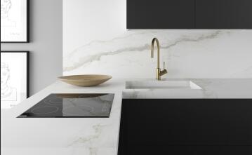 依諾巖板×法迪奧聯(lián)合推出的【不銹鋼巖板櫥柜&島臺(tái)】,依諾3mm超薄巖板,自重輕,應(yīng)用于【櫥柜門板】開合自如,不易變形;【櫥柜臺(tái)面】使用12mm厚度的巖板,坯體堅(jiān)實(shí),承重更強(qiáng),是家居臺(tái)面的理想材料。