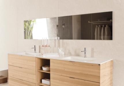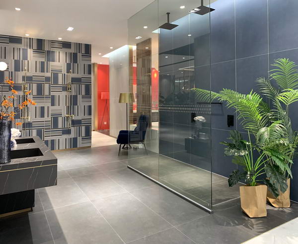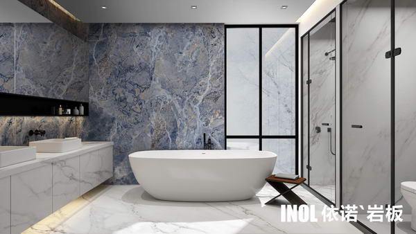 依諾巖板廠家推出【子母規(guī)格】的產(chǎn)品【萊姆石】,1000×2500及 750×1500兩種規(guī)格,前者可應(yīng)用于客廳地面或洗手間一片到頂,后者則可用在洗手間地面或墻地通用。