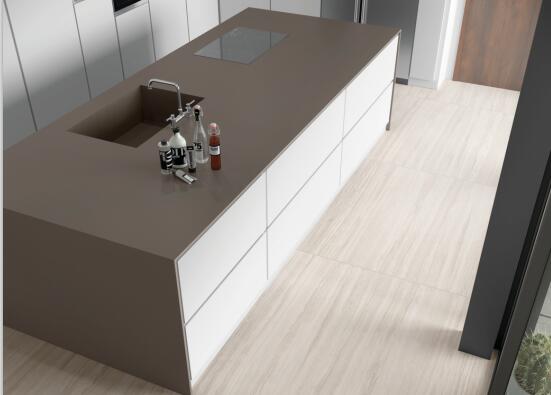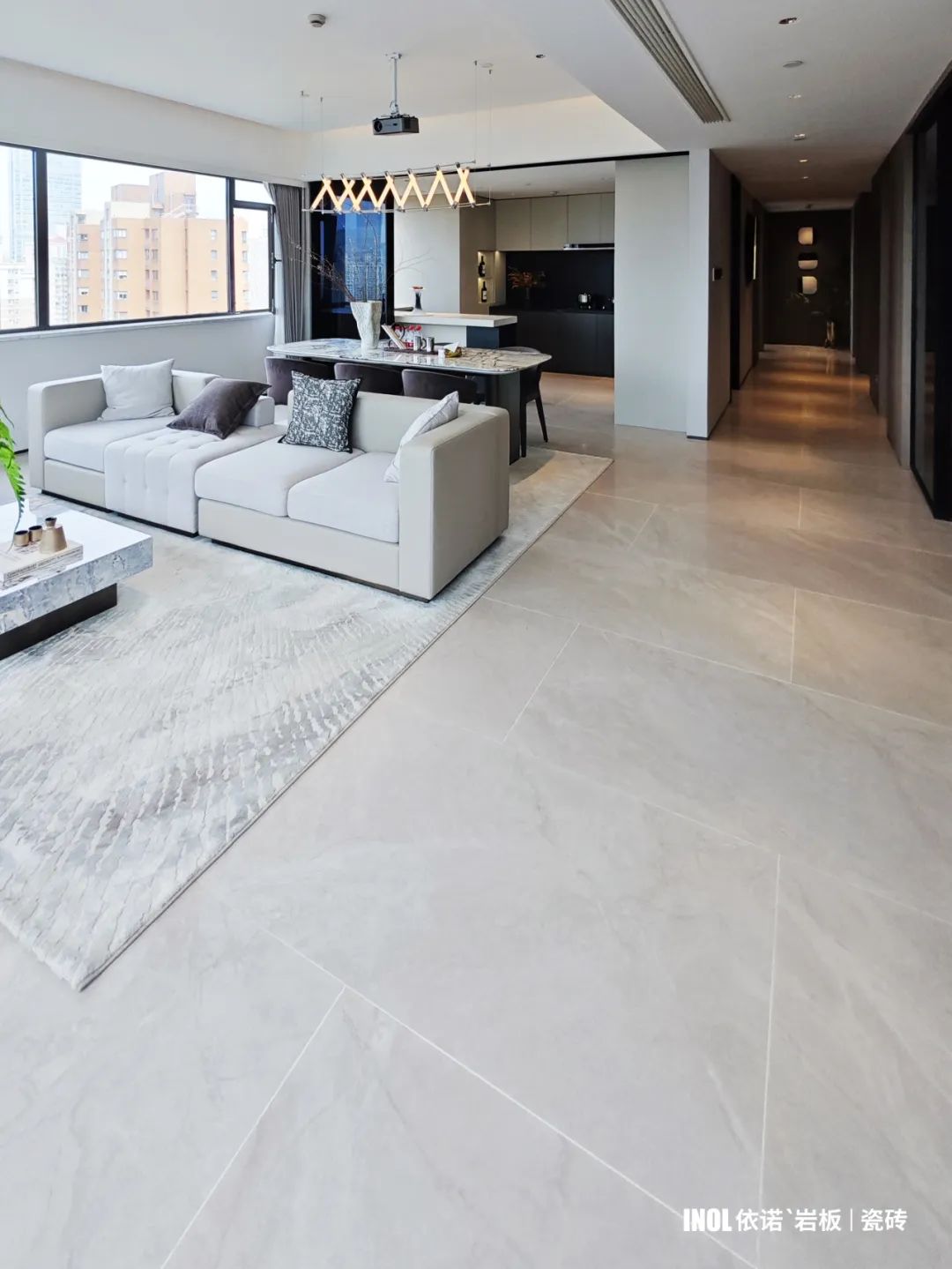 依諾巖板廠家推出質(zhì)感巖板【科西嘉】900×1800mm和600×1200mm的子母規(guī)格,省卻搭配煩惱。大規(guī)格可以用在客廳地面,小的可以用在洗手間地面或墻地通用,滿足“全屋通用”的需要。