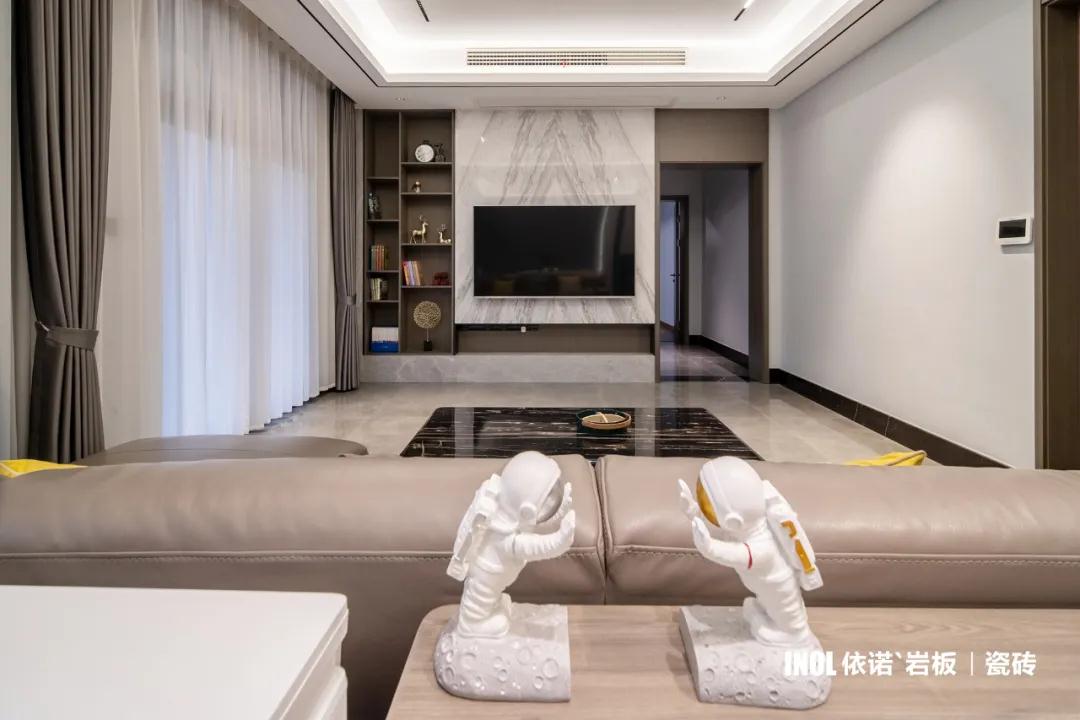 一面好看的電視背景墻瓷磚就能提升整個(gè)空間的高級(jí)感!依諾瓷磚120㎡現(xiàn)代簡(jiǎn)約風(fēng)家裝實(shí)拍案例,選對(duì)瓷磚好看又省錢。