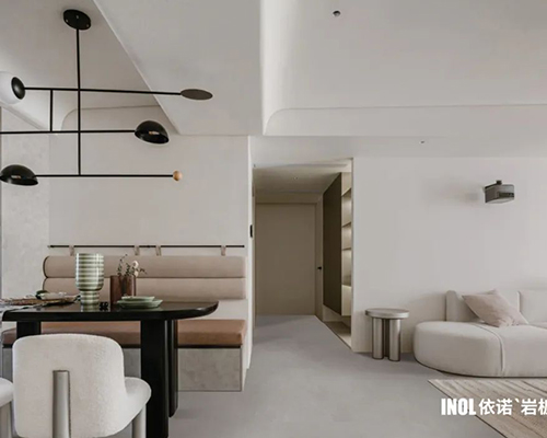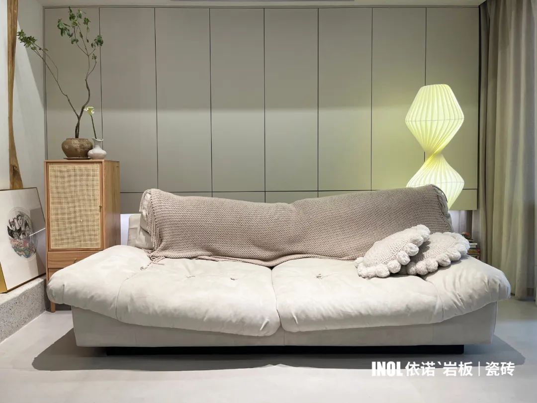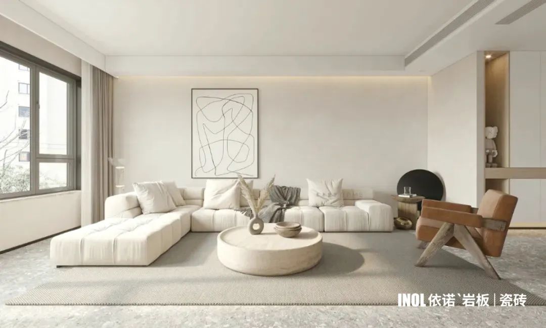 依諾老友記140㎡侘寂風(fēng)家裝案例!750X1500mm微水泥瓷磚【盧斯】全通通鋪兼具原生態(tài)美感與溫柔氣息的【奶油侘寂風(fēng)】。